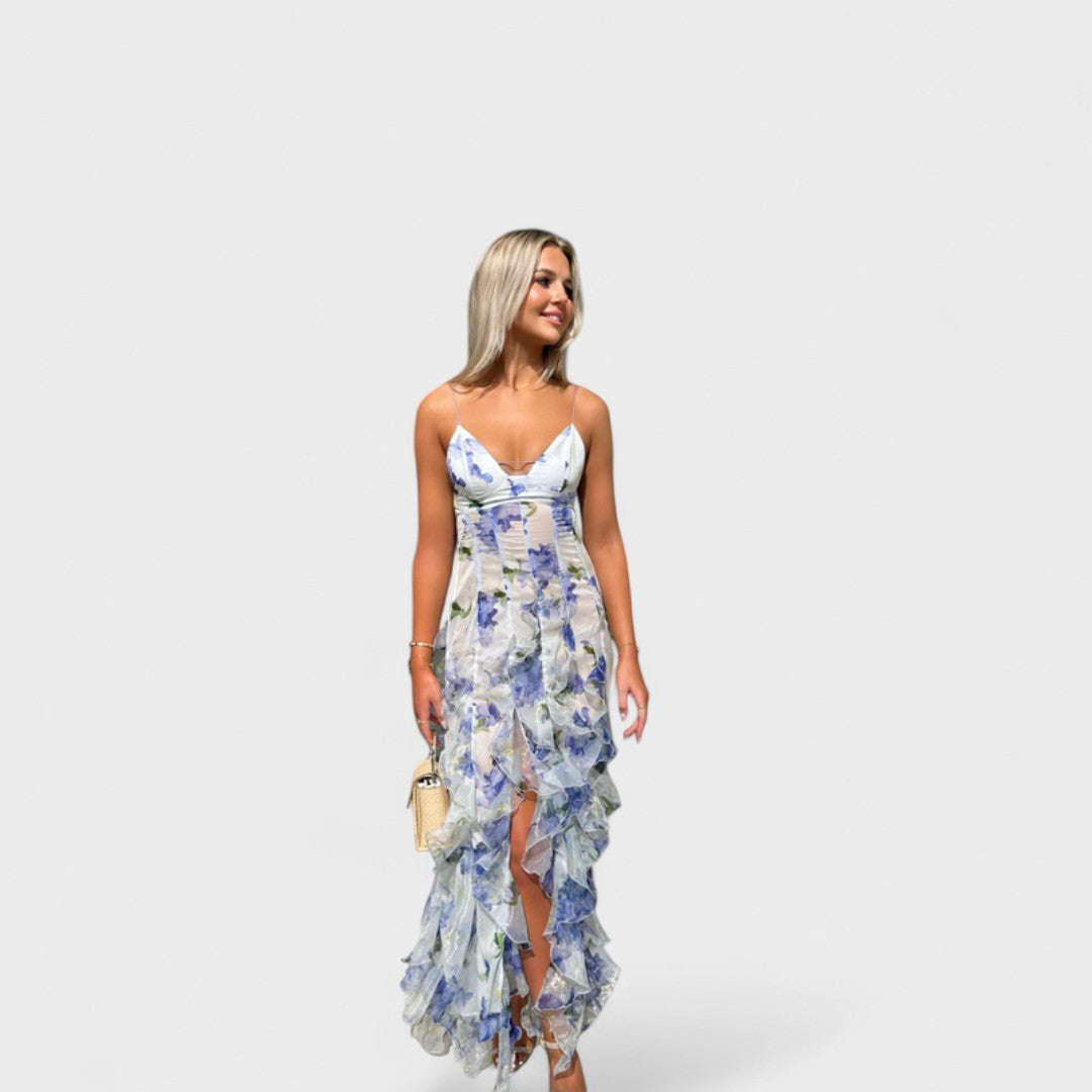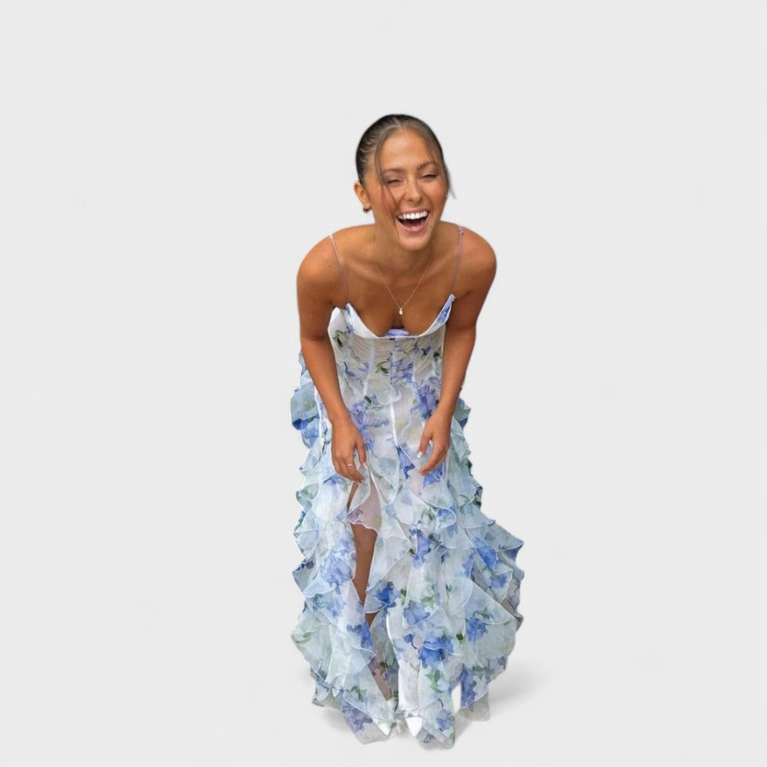 Миряна - Стилна дълга рокля с волани за всякакви поводи
