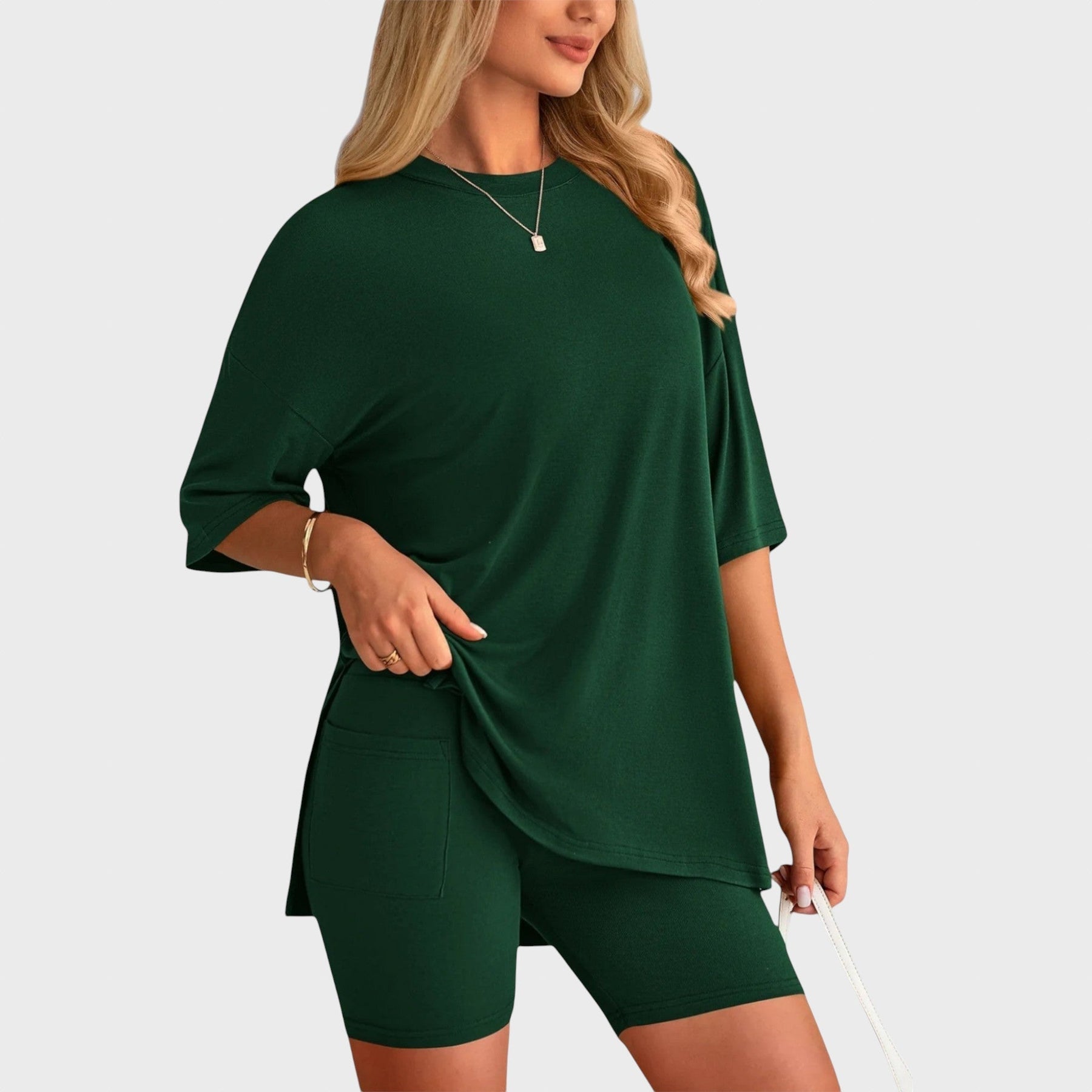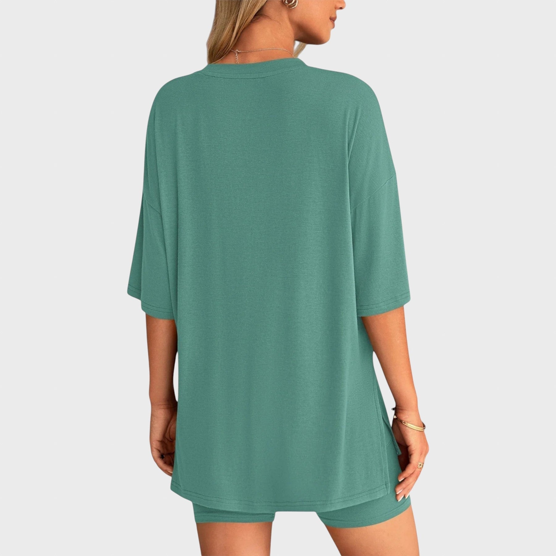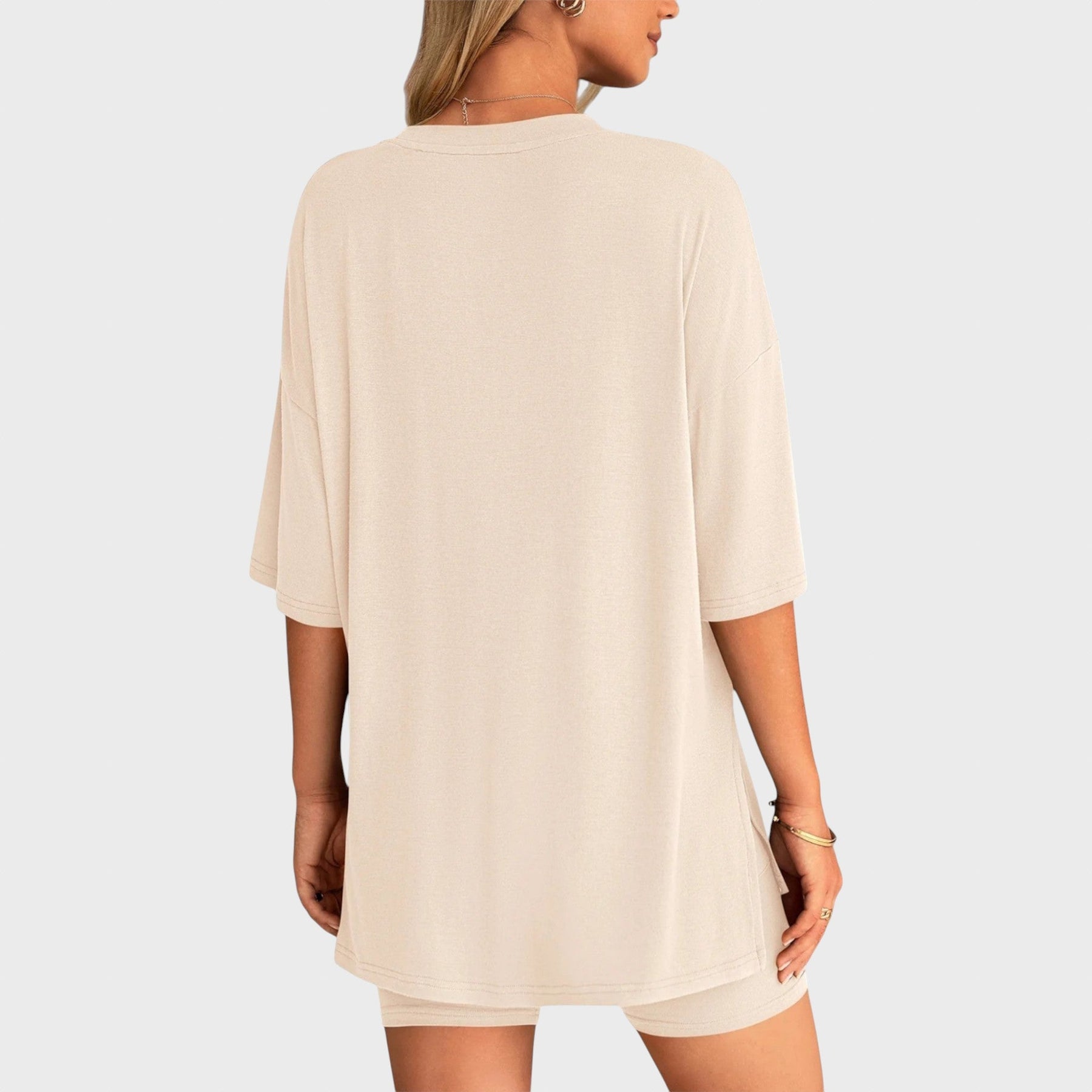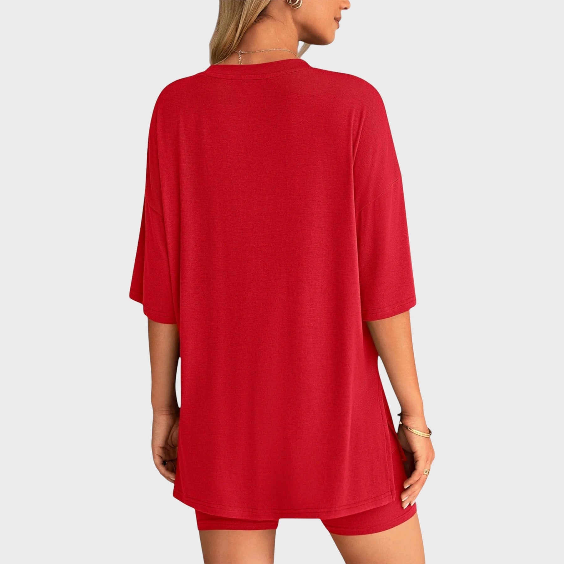 • Несравним комфорт: Свободната тениска и шортите с висока талия осигуряват удобно прилягане и неограничена свобода на движение, идеални за всяка дейност.