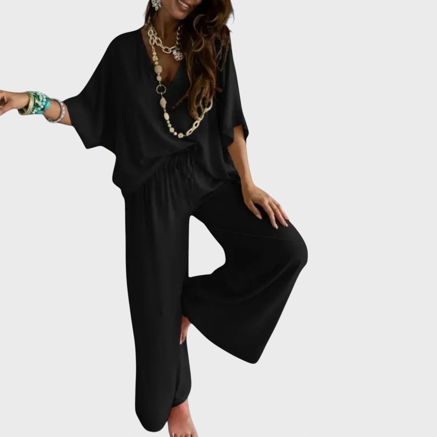 Открийте перфектната комбинация от класически чар и модерен комфорт с нашия комплект. Идеален за носене през целия ден, той добавя спокойна, непринудена елегантност към всяка визия - от небрежно излизане до по-официален брънч.