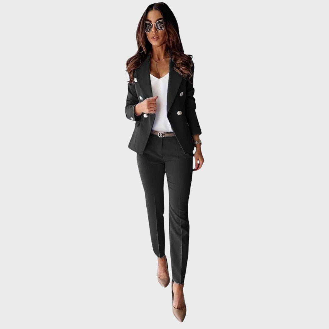 С елегантни метални копчета и перфектно съчетани панталони, сакото Божена предлага: