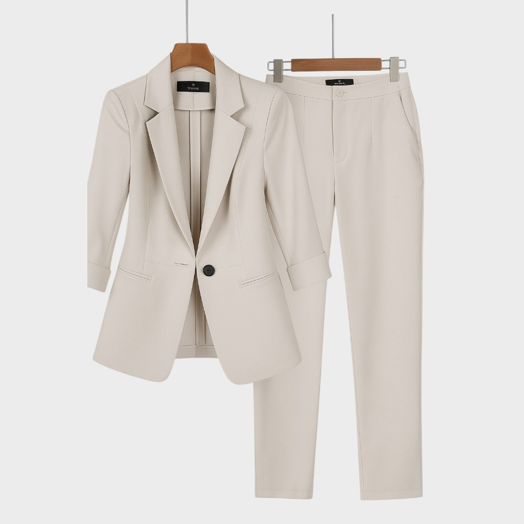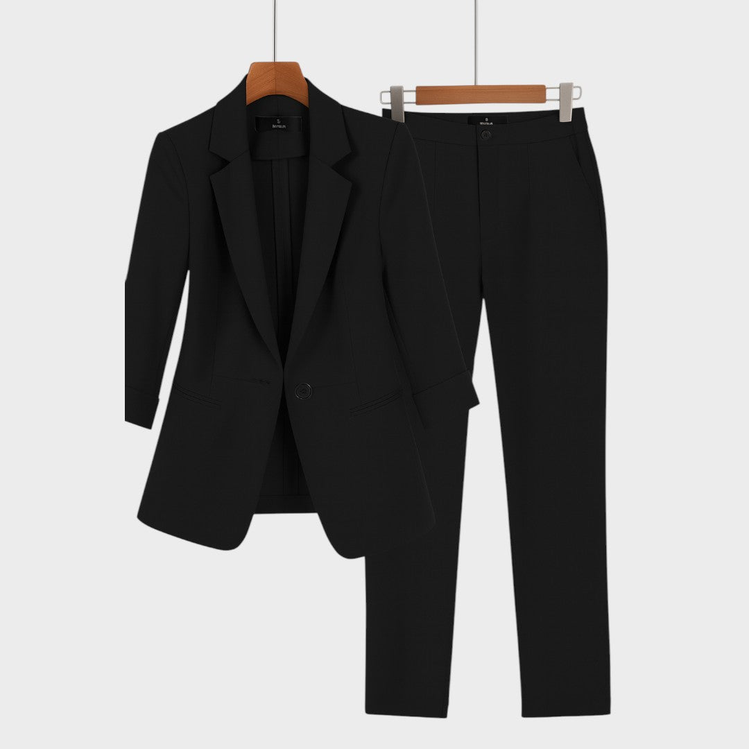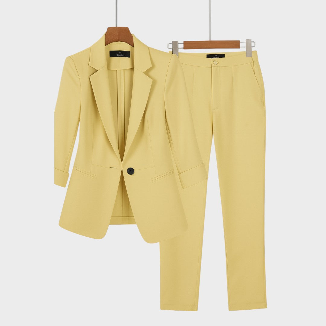 Този комплект сако е перфектният избор за професионалисти, които искат да изглеждат безупречно. С безкомпромисен дизайн и висококачествени материали, той осигурява комфорт и дълготрайност, позволявайки ви да се чувствате уверени през целия ден.