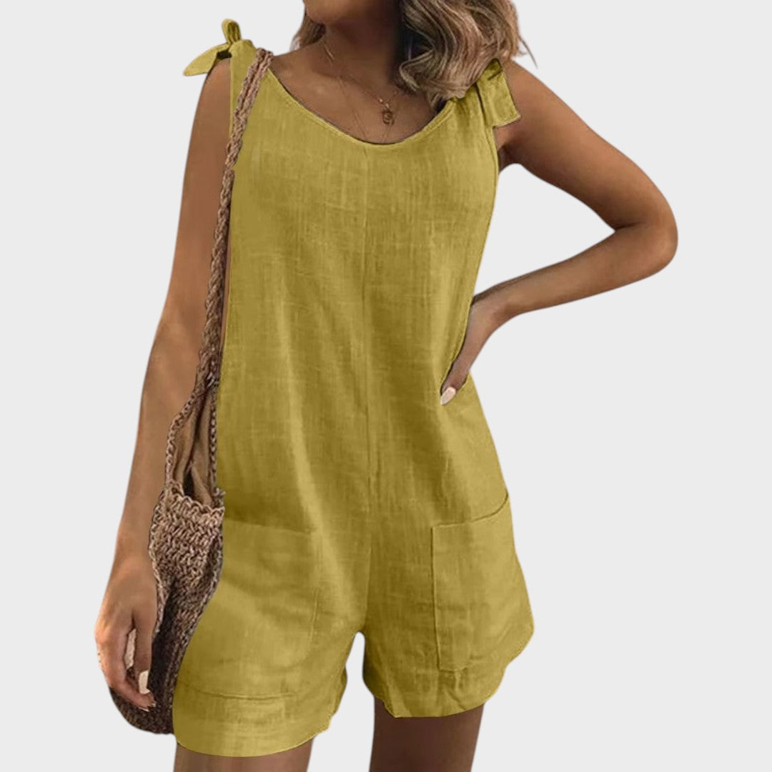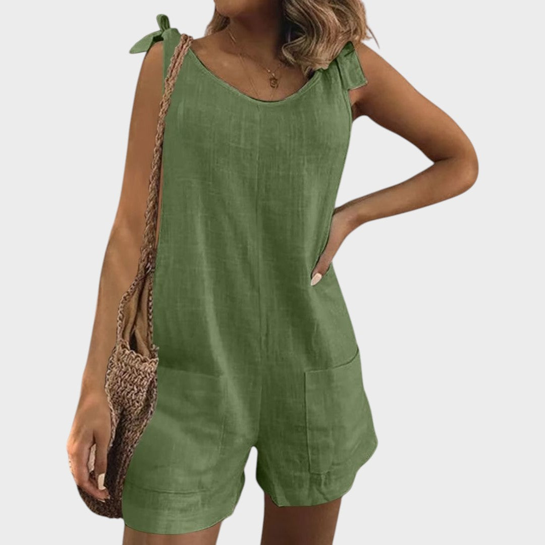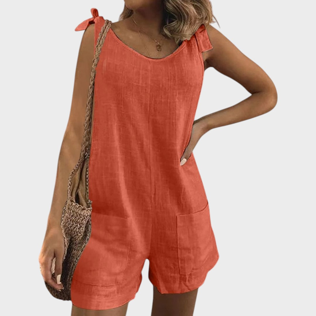 Открийте идеалния летен аутфит с нашия лек комбинезон, създаден специално за топлите дни и неформални поводи. С модерен безръкавен дизайн, практични джобове и женствени връзки на раменете, той предлага перфектната комбинация от комфорт и стил за всяка ситуация.