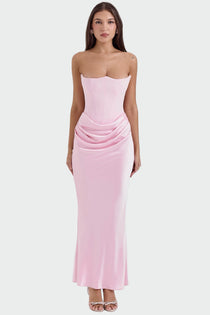 Открийте своята елегантност с нашата импозантна рокля с корсет без презрамки! Тази рокля е проектирана да подчертава вашия силует и да придава увереност на всяка жена. Със своя тесен крой и елегантен набръчен колан, тя съчетава женственост и уникален флуид, което я прави перфектен избор за специални поводи.