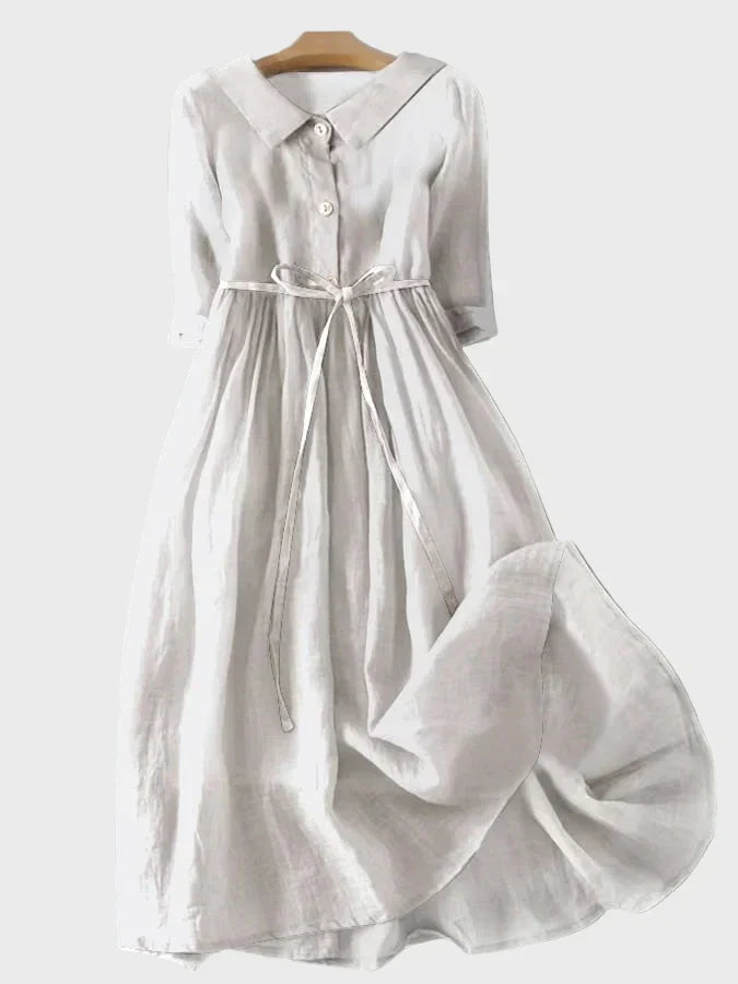 - Вечен стил: С класическото си деколте и копчета отпред, роклята е идеална за неформални и официални събития.