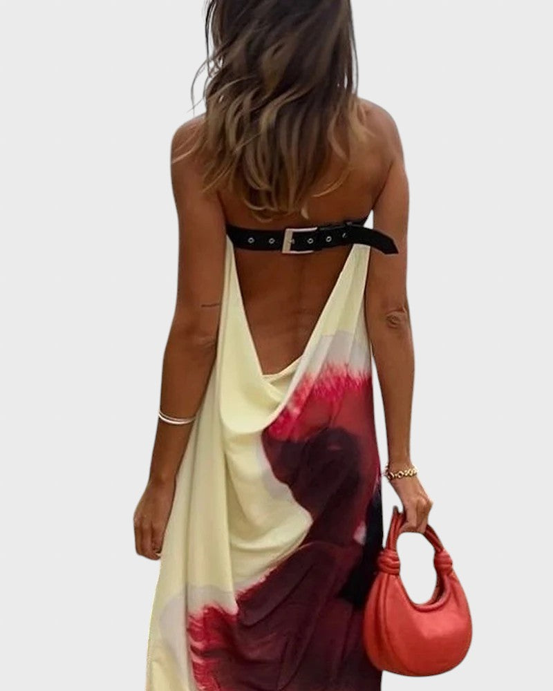 Изкуство в движение - Нека артистичната смелост се срещне с непринудена елегантност в тази великолепна рокля. Със своя минималистичен дизайн и впечатляващ абстрактен принт, тя е идеалният избор за летни вечери, коктейли по залез слънце или морски бягства.
