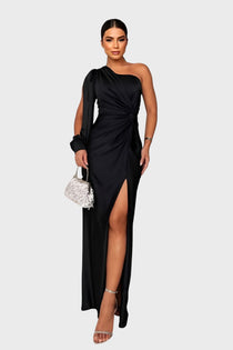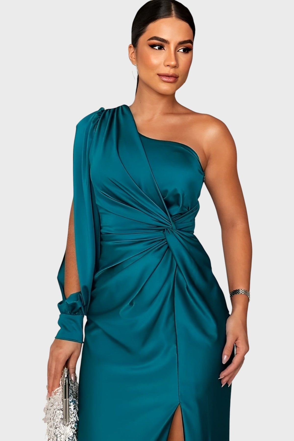 Открийте асиметричната елегантност! Тази зашеметяваща рокля съчетава луксозната елегантност с дръзкия дизайн, предлагайки модерен и бляскав парти вид. Идеална е за гала вечери, официални събития или всякакви поводи, на които искате да оставите незабравимо впечатление.