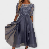 Открийте нашата специална рокля за сватбени гости! С миди силует, елегантно бродиран корсет и къси ръкави, тази рокля е идеалният избор за всяко празнично събитие.