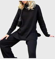 • Целодневен комфорт: Изработен от мека плетена материя, осигуряваща топлина и свобода на движение, благодарение на свободната кройка и спуснатите рамене.