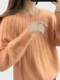 Останете стилни и удобни! Прегърнете комфорта и минималистичната елегантност с този плетен пуловер. Изработен от прежда, която създава мек пухкав ефект, този пуловер е върховният уютен лукс за по-студените дни, добавяйки богата текстура и деликатен блясък към вашата визия.