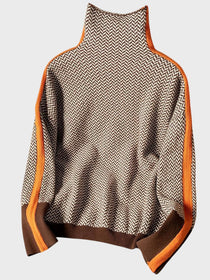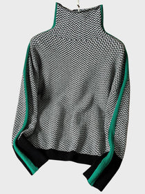 - Стил и дизайн: Високата яка не само предлага допълнителна топлина, но и добавя елегантен щрих, а смелите райета придават уникалност на визията ви.