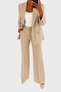 Вечен комфорт в майчински стил! Открийте перфектната комбинация от класически чар и модерен комфорт с този елегантен костюм. Идеален за носене през целия ден, той добавя неоспорима изтънченост към всеки повод, от официалния офис до най-важните социални събития.
